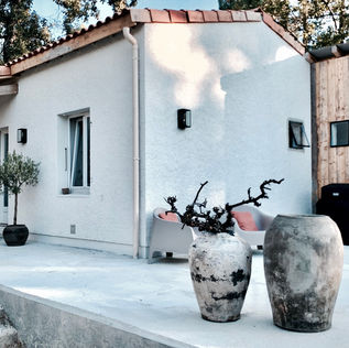 Het vakantiehuis, te midden van een mooie aangelegde tuin, is voorzien van een groot zonneterras met 2 loungezeteltjes en een gedeeltelijk overdekt terras met een houten eettafel en 2 zitbanken. Aan het terras is ook een houten bijgebouw met daarin onder andere een wasmachine en een BBQ op houtskool. Naast het huis ligt een professioneel aangelegd pétanque veld waar het door de sfeervolle lichtslinger tot laat op de avond gezellig vertoeven is.
